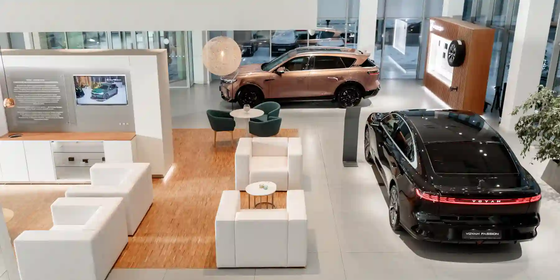 Шоу-рум площадью 365 м2 объединяет зону демонстрации моделей VOYAH и уютную клиентскую зону, в которых посетители могут в непринужденной и уютной атмосфере познакомиться с моделями инновационного бренда и получить подробную информацию об акциях и специальных предложениях. В полном соответствии с философией VOYAH, презентация моделей и вся коммуникация между сотрудниками центра и клиентом предполагает индивидуальный подход, а визиты посетителей организуются в удобное для них время.